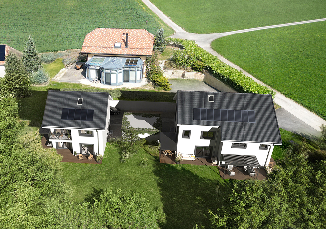 Le projet Lignerolle a été soigneusement conçu pour respecter et valoriser l’environnement naturel dans lequel il s’inscrit. Les deux habitations jumelées ont été volontairement décalées afin de créer une sensation d’intimité entre voisins, sans obstruer la vue sur la végétation. Quant à la maison individuelle, elle se distingue par ses volumes généreux et une disposition qui privilégie l’entrée de lumière naturelle et la fluidité entre les espaces. Un équilibre entre fonctionnalité, esthétique et bien-être.
